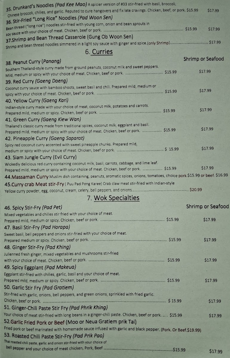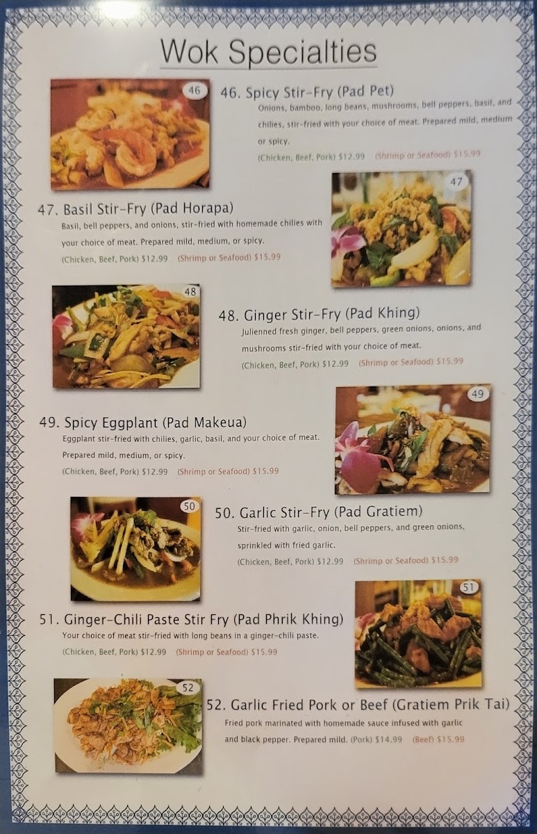 For a heartier option, the Jungle Curry is a standout dish. Bursting with flavor, this aromatic curry features tender chicken, vibrant vegetables, and a delightful blend of herbs, all enveloped in rich coconut milk. Compliment your curry with a side of Jasmine Rice that will soak up all the delicious sauce. And for a true indulgence, don’t miss out on the exquisite Mango With Sticky Rice, a delightful dessert that perfectly balances sweetness and creaminess.